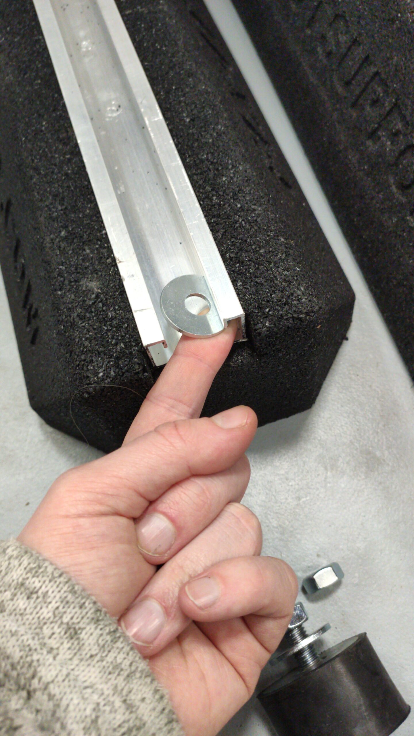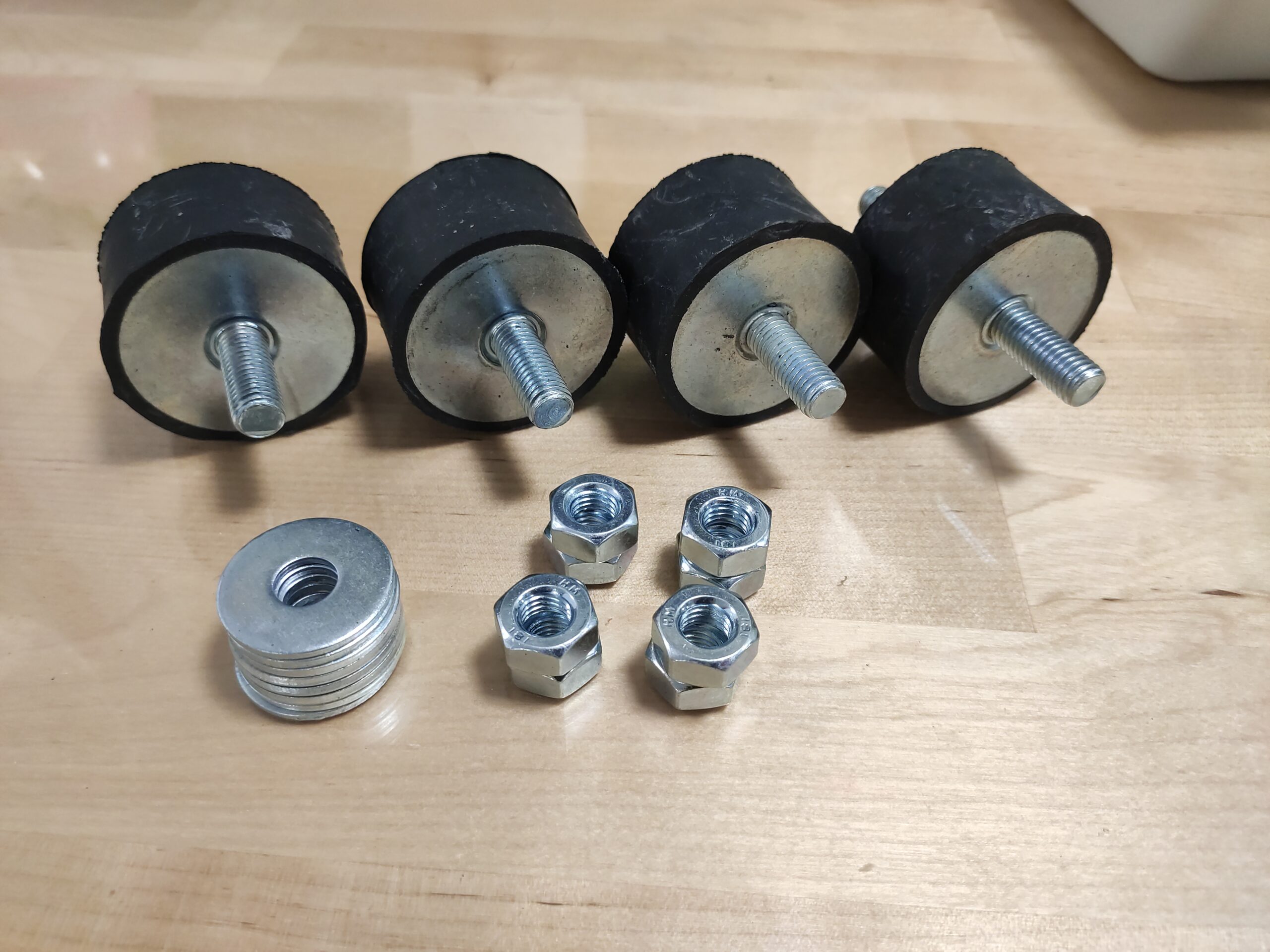 Nadat de binnen-unit geplaatst is, is het tijd om de buiten-unit te monteren. Omdat het dak van de garage plat is, heeft Gijs besloten de buitenunit hier met schok dempende poten op te plaatsen. De poten, in combinatie met extra schokdempers, moeten de trillingen en hiermee het geluid van de buiten-unit dempen. Tevens zullen deze schokdempers het bitumen dak beschermen tegen de trillingen. Helaas heeft Gijs de verkeerde maat bevestigingsmateriaal besteld, maar na een lichte modificatie kon de buiten-unit op zijn poten bevestigd worden en op het dak geplaatst worden.