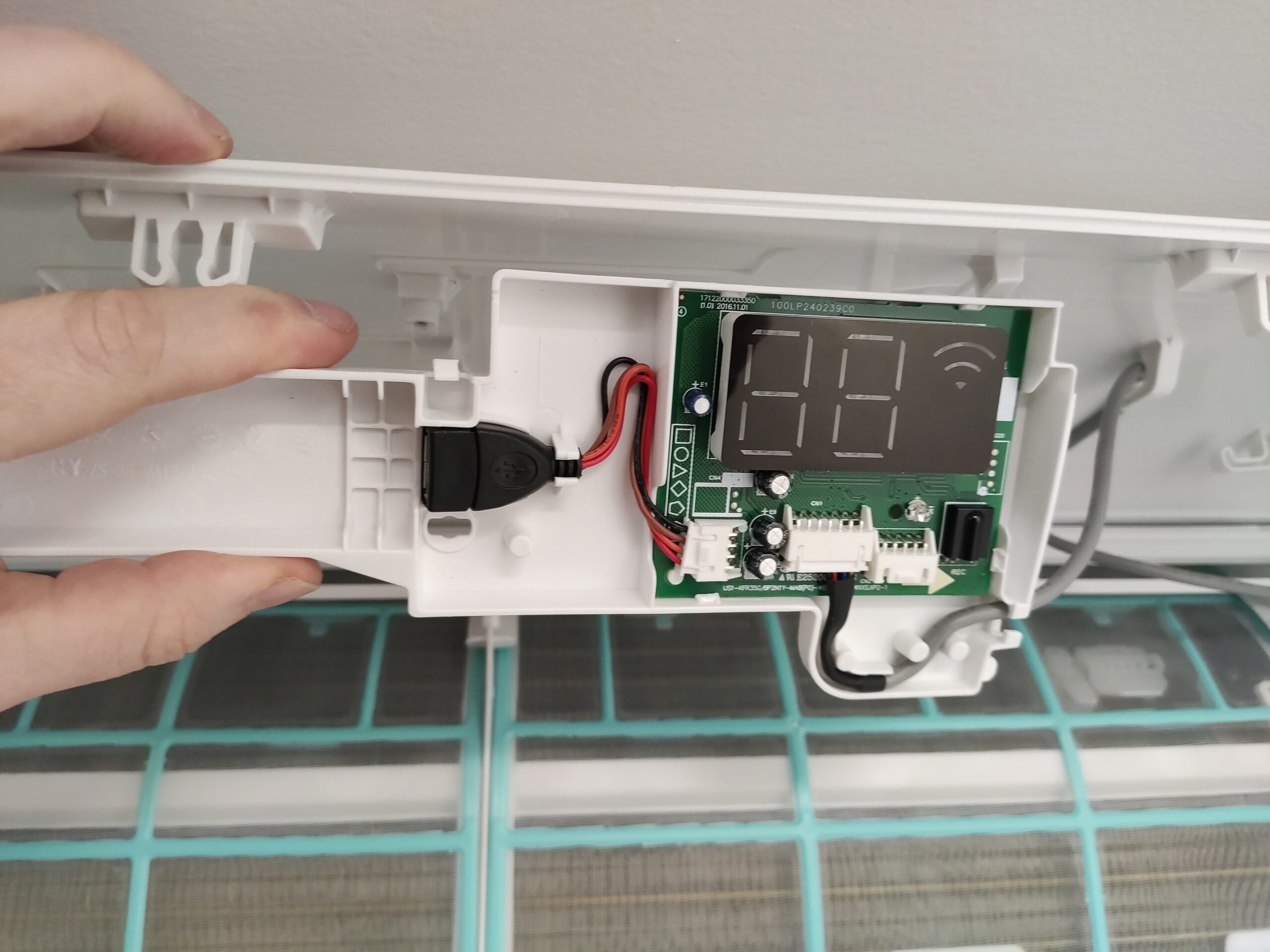 Omdat Gijs een liefhebber van slimme gadgets is, breid hij zijn airco uit met een wifi module. Onder de klep van de binnen-unit is een USB aansluiting verborgen. Door hier een speciale wifi module op aan te sluiten kan de airco, via het internet, met een app bediend worden.