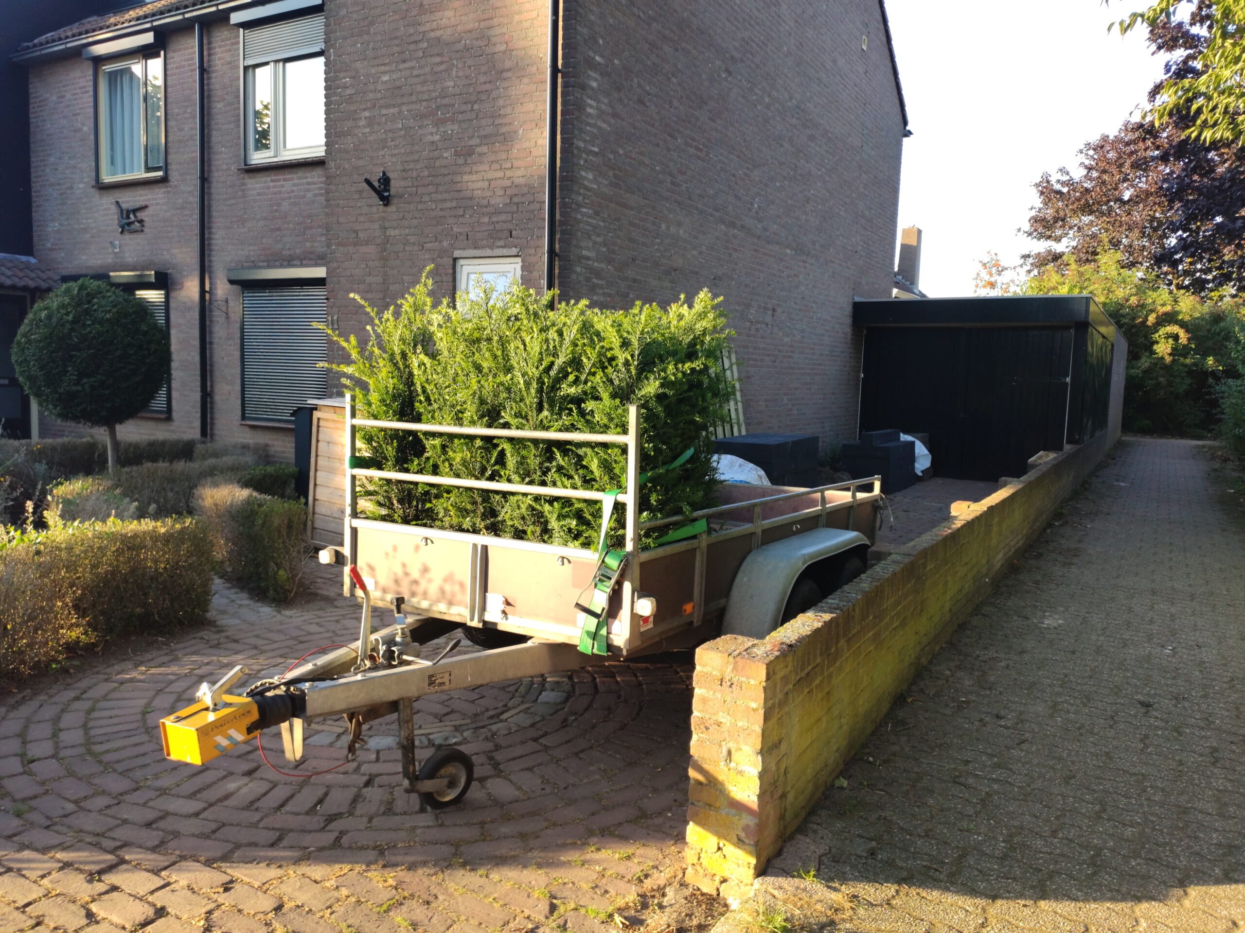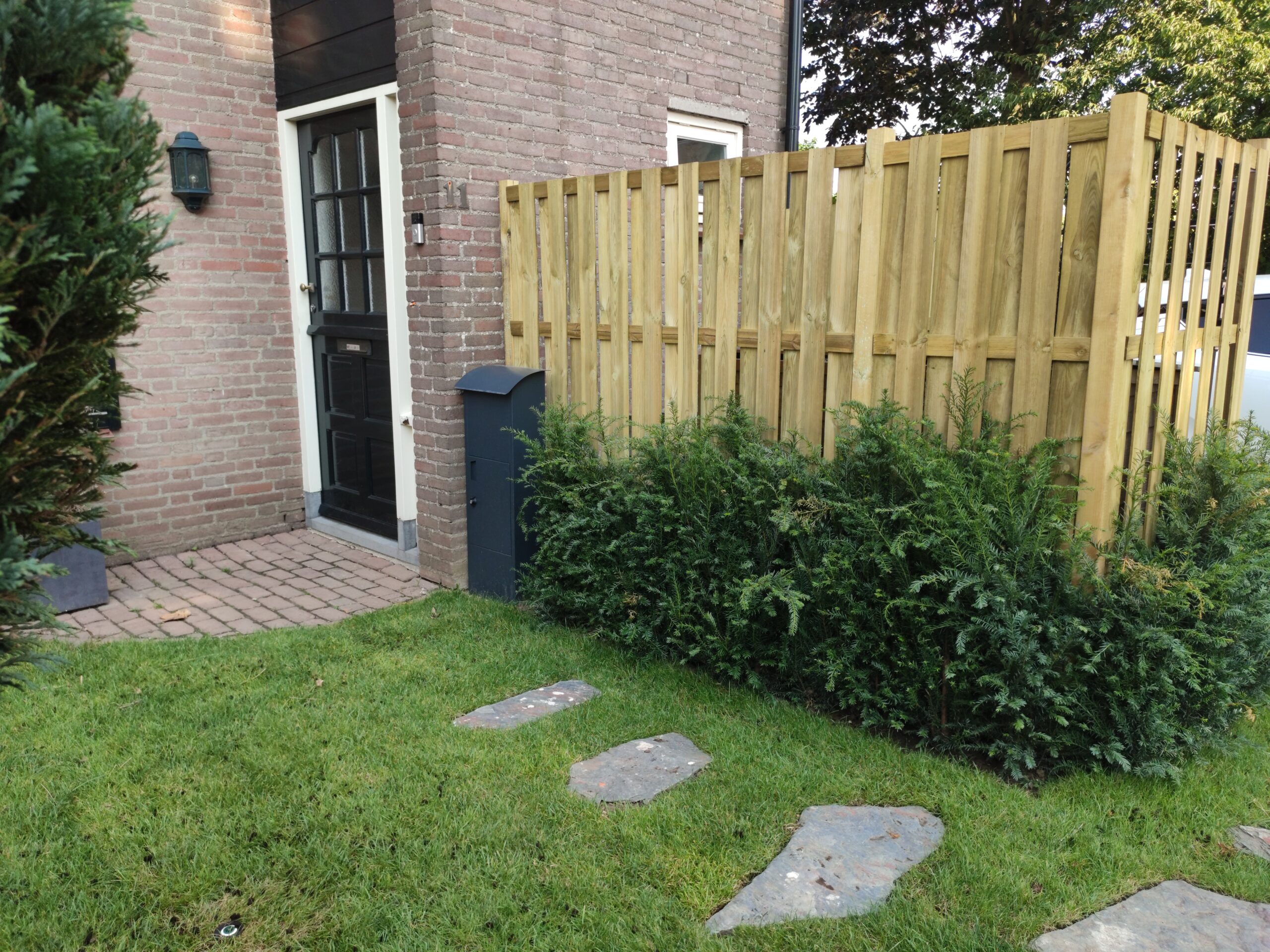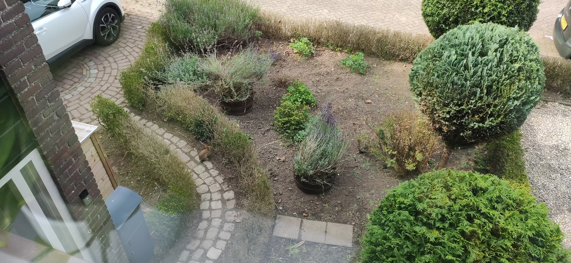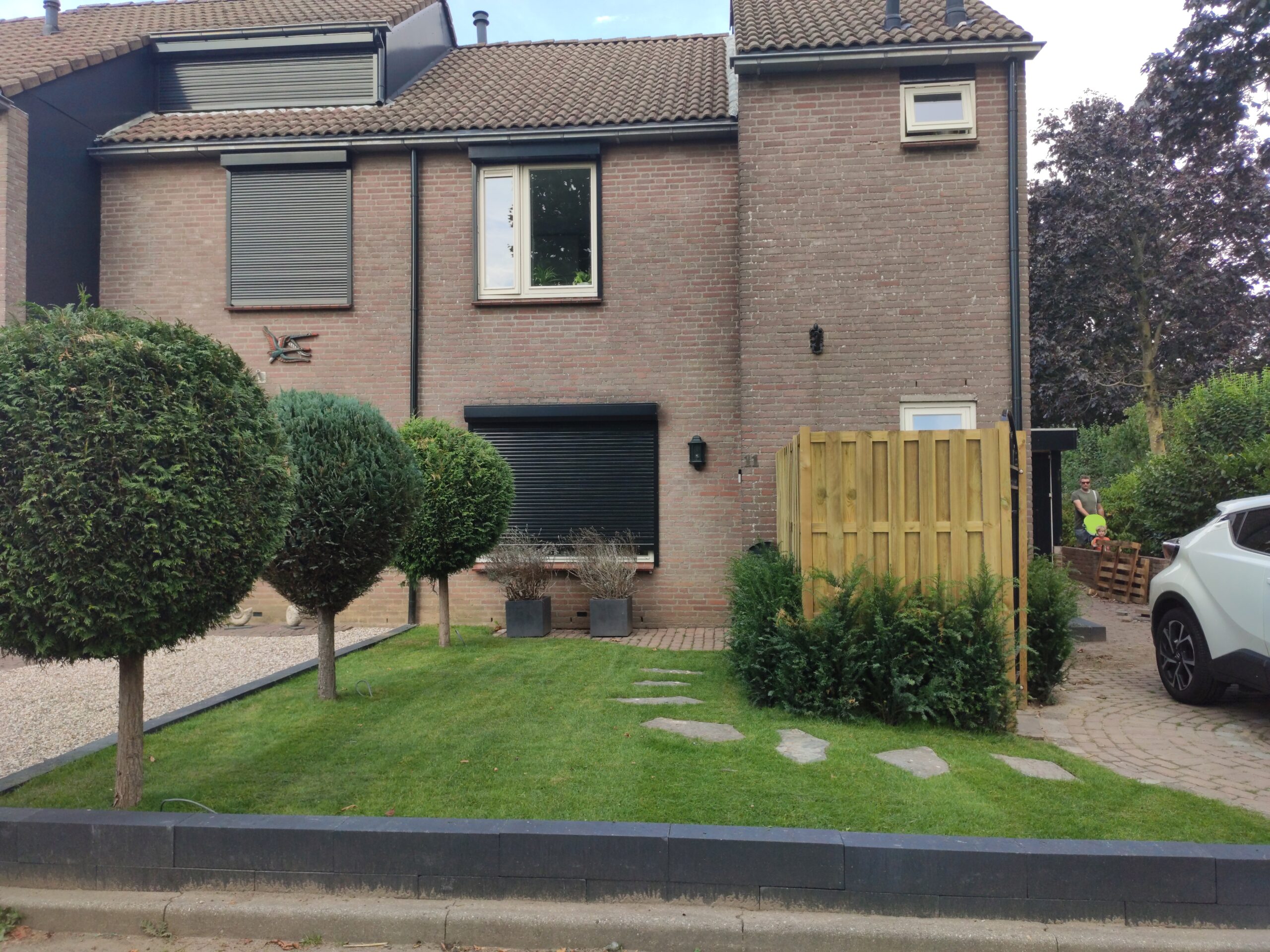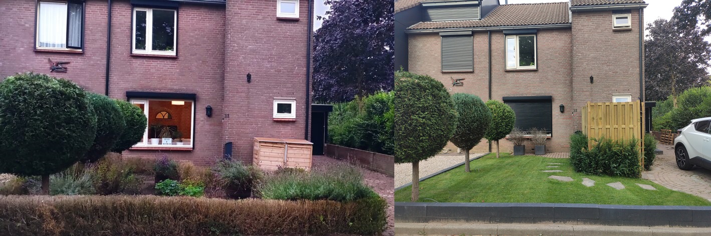 After finishing the most important work in the backyard, it was time to tackle the front yard. After all, the front yard is the first impression people get of your home. It was mostly boxwood hedge. Unfortunately, the hedge was heavily damaged by box tree moths, a real pest and difficult to control in an eco-friendly way. Because most of the hedge was already gone, we decided to fully redesign the front yard.