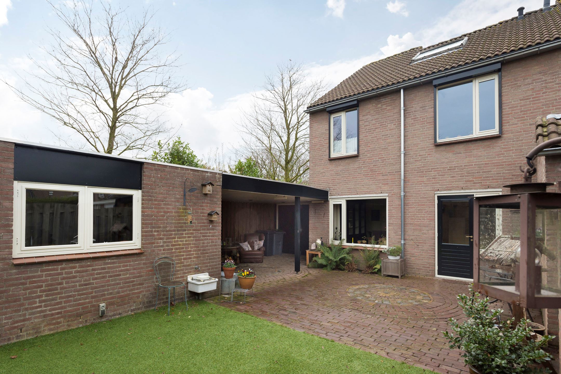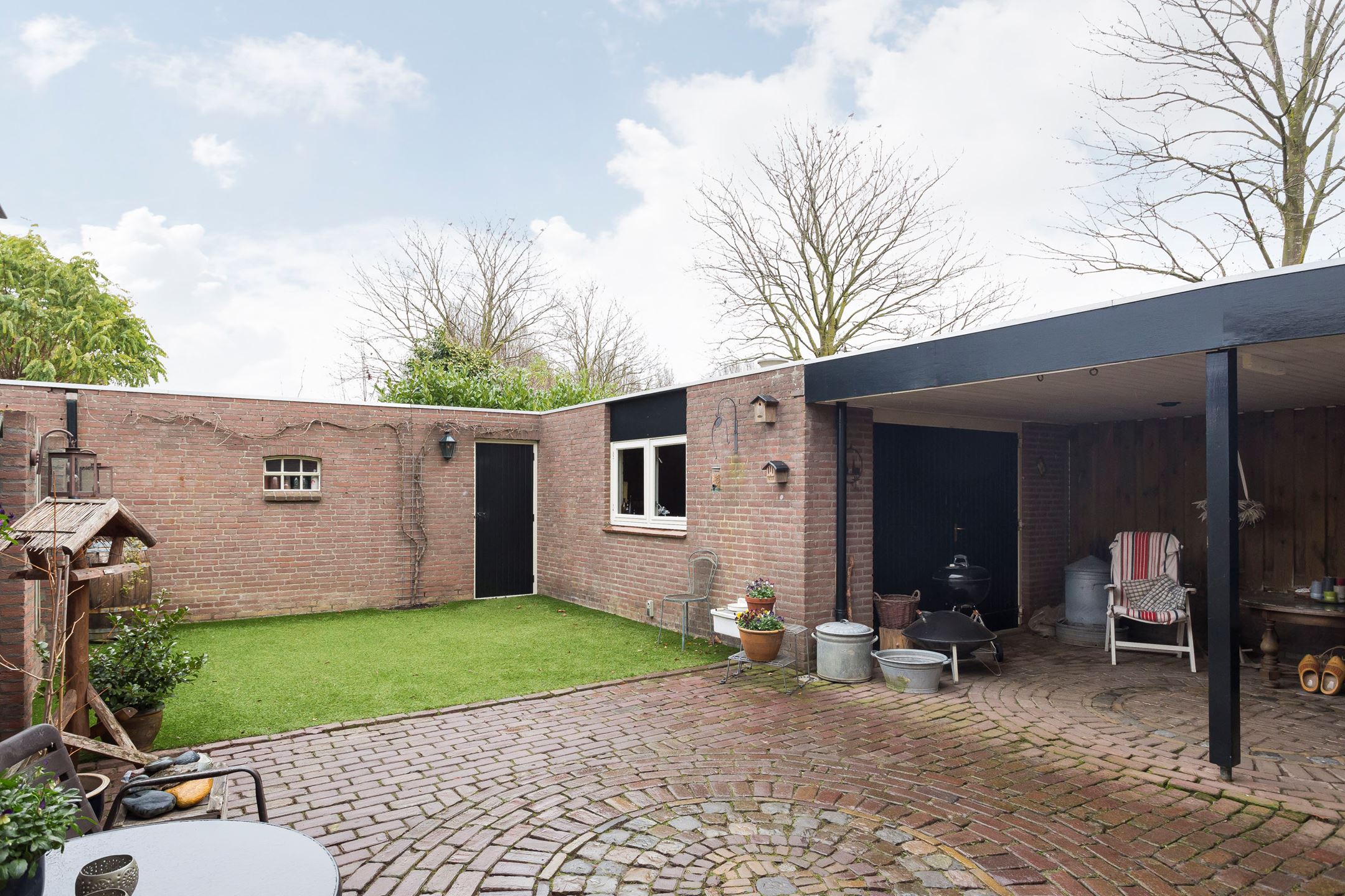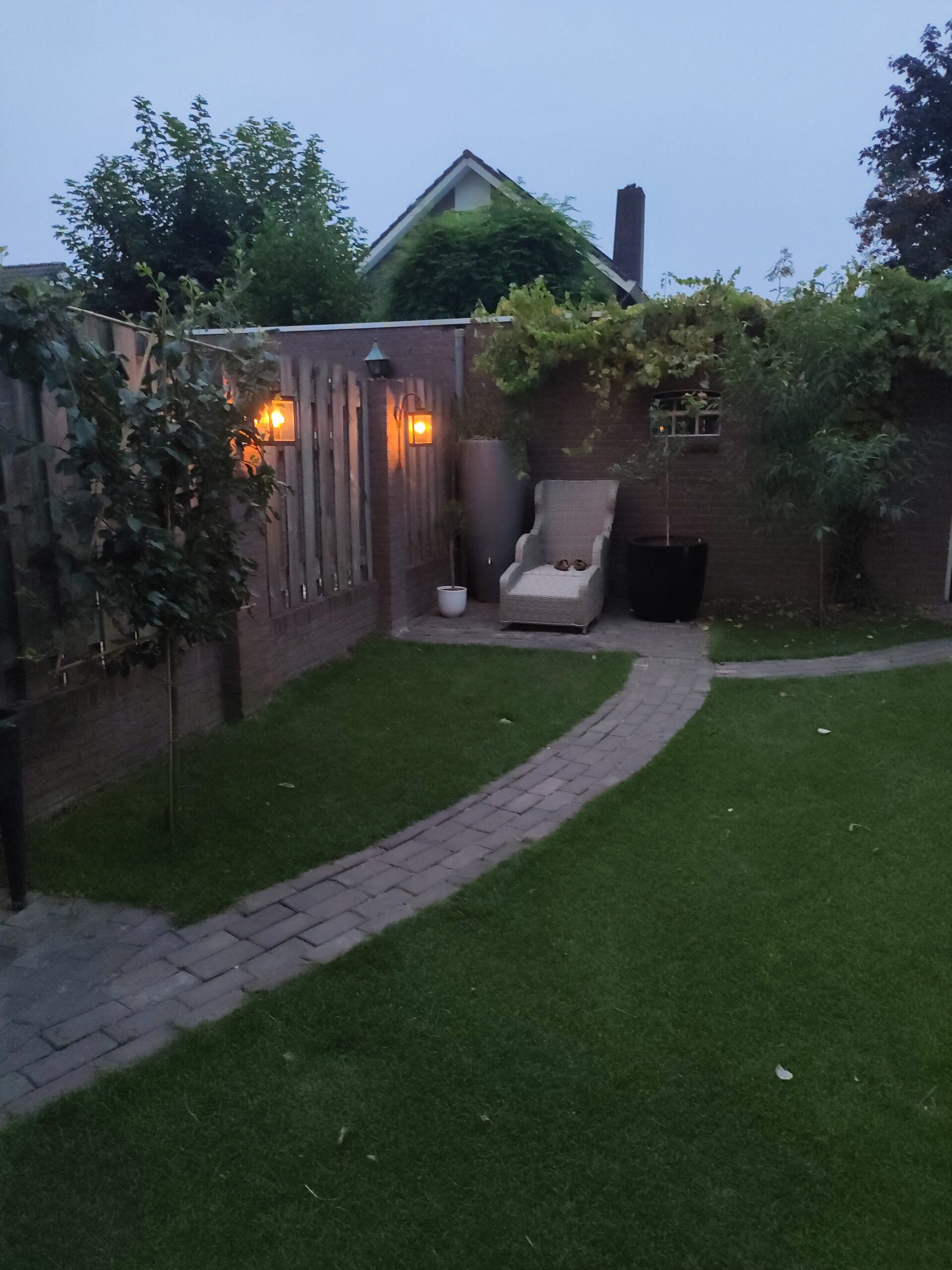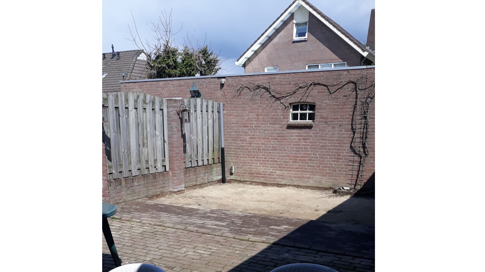 Our Gijs can do a bit of everything, so he got to work like a proper paver and laid it all in no time. Sharp-eyed viewers may have noticed that the circular pattern from the center of the garden returns near the back door and the small shed door. It is a small detail, but exactly the kind that gives a garden that little extra.