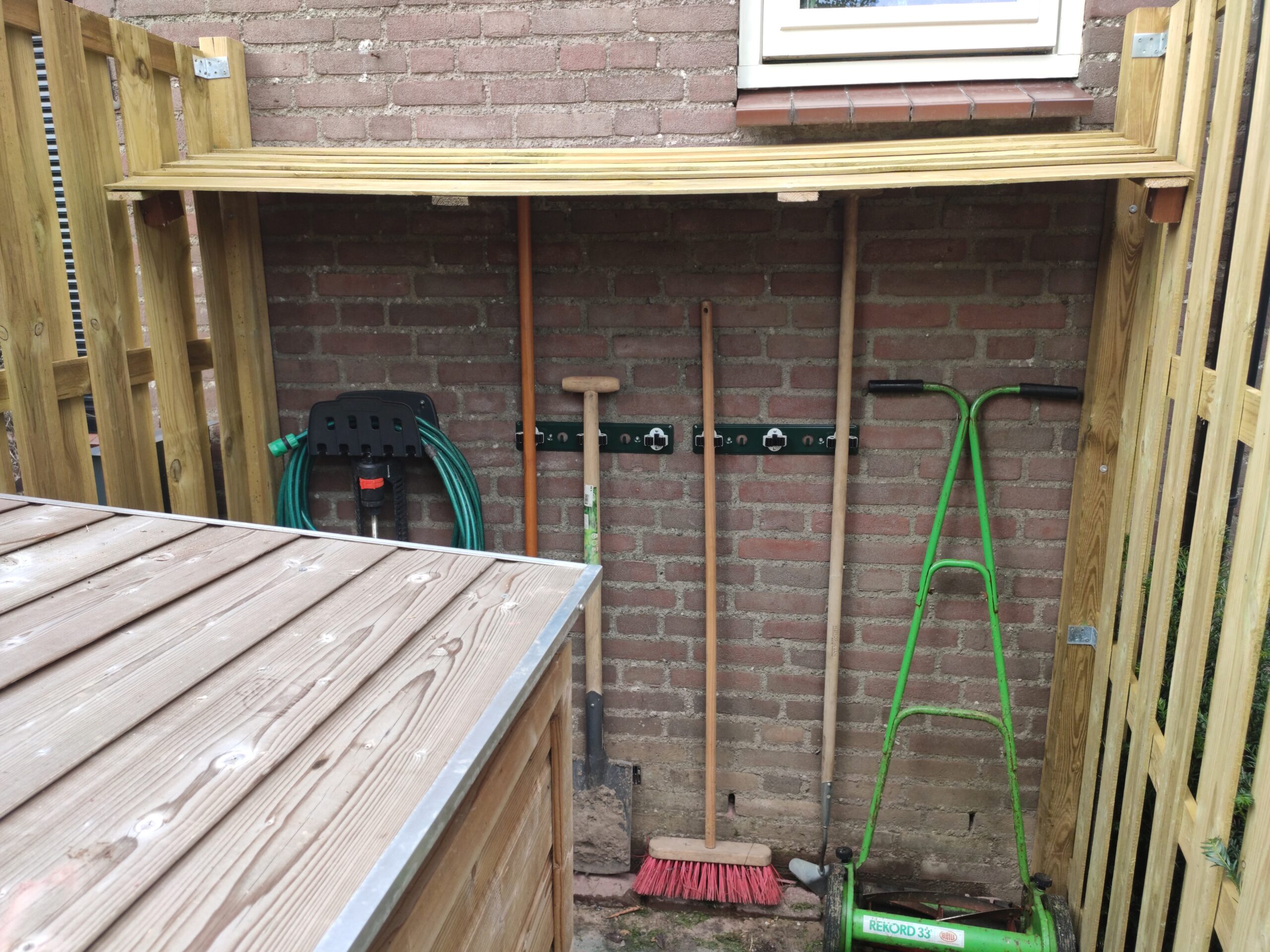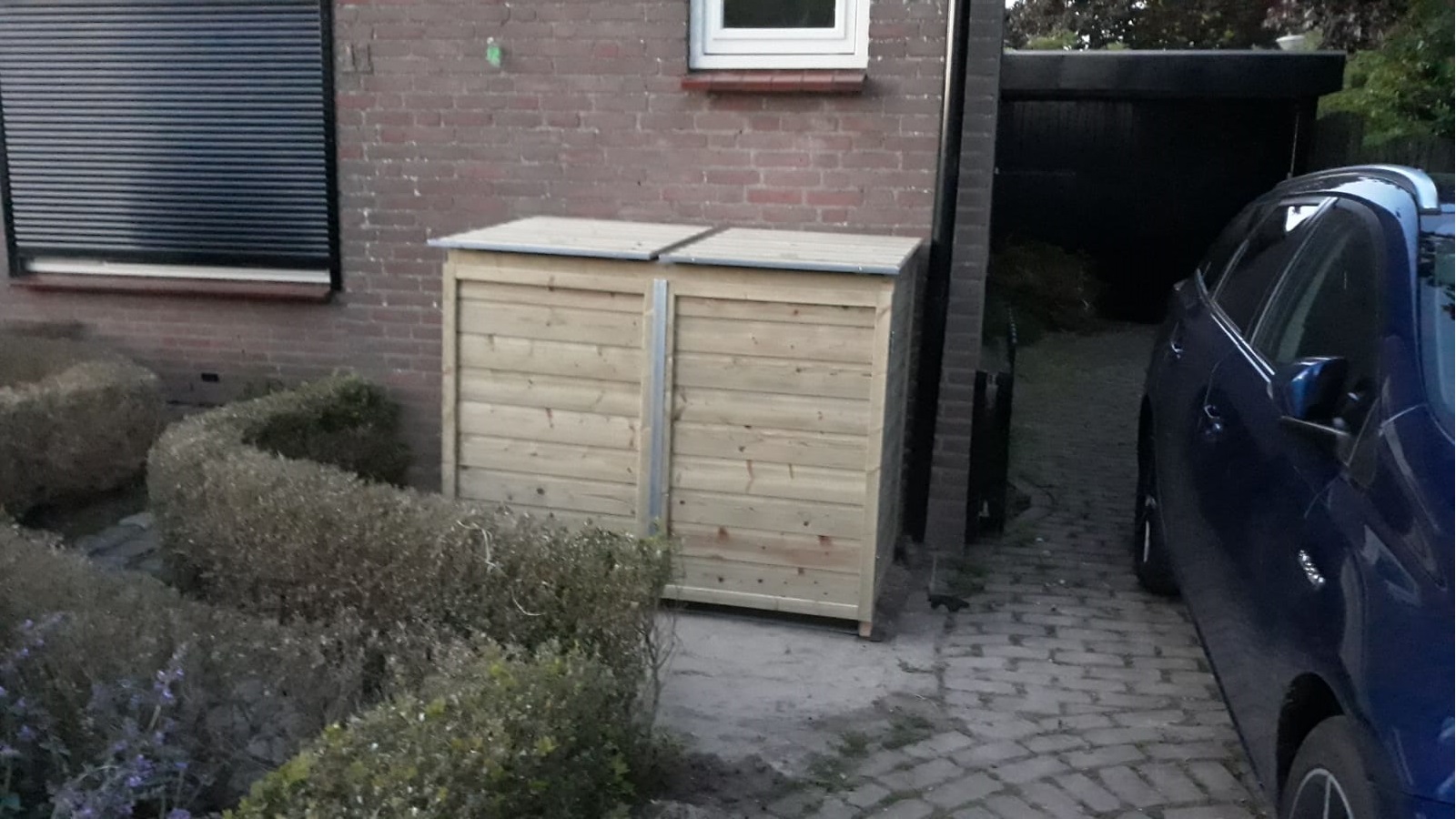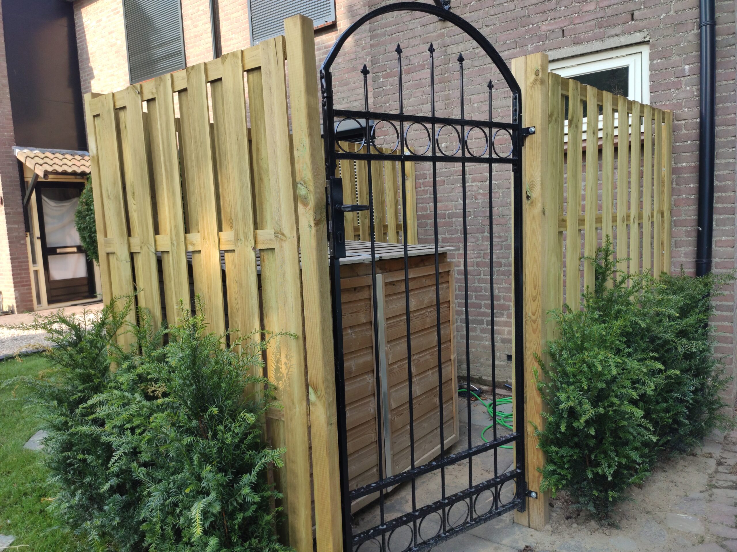 Because space in the backyard is limited, saving as much room as possible is important. For that reason, Gijs had already decided to move the waste bins to the front of the house. To keep them out of sight, he installed a neat bin enclosure and hid it behind a fence. That way, the neighbors do not have to stare at ugly bins. The enclosure has gas springs to hold the lids open, so Gijs keeps both hands free while taking out the trash.