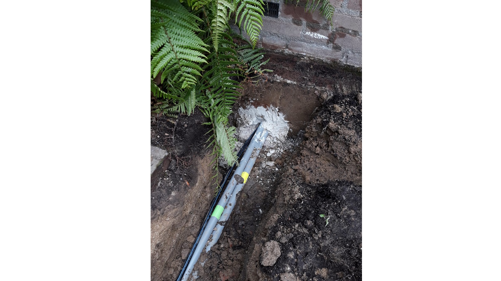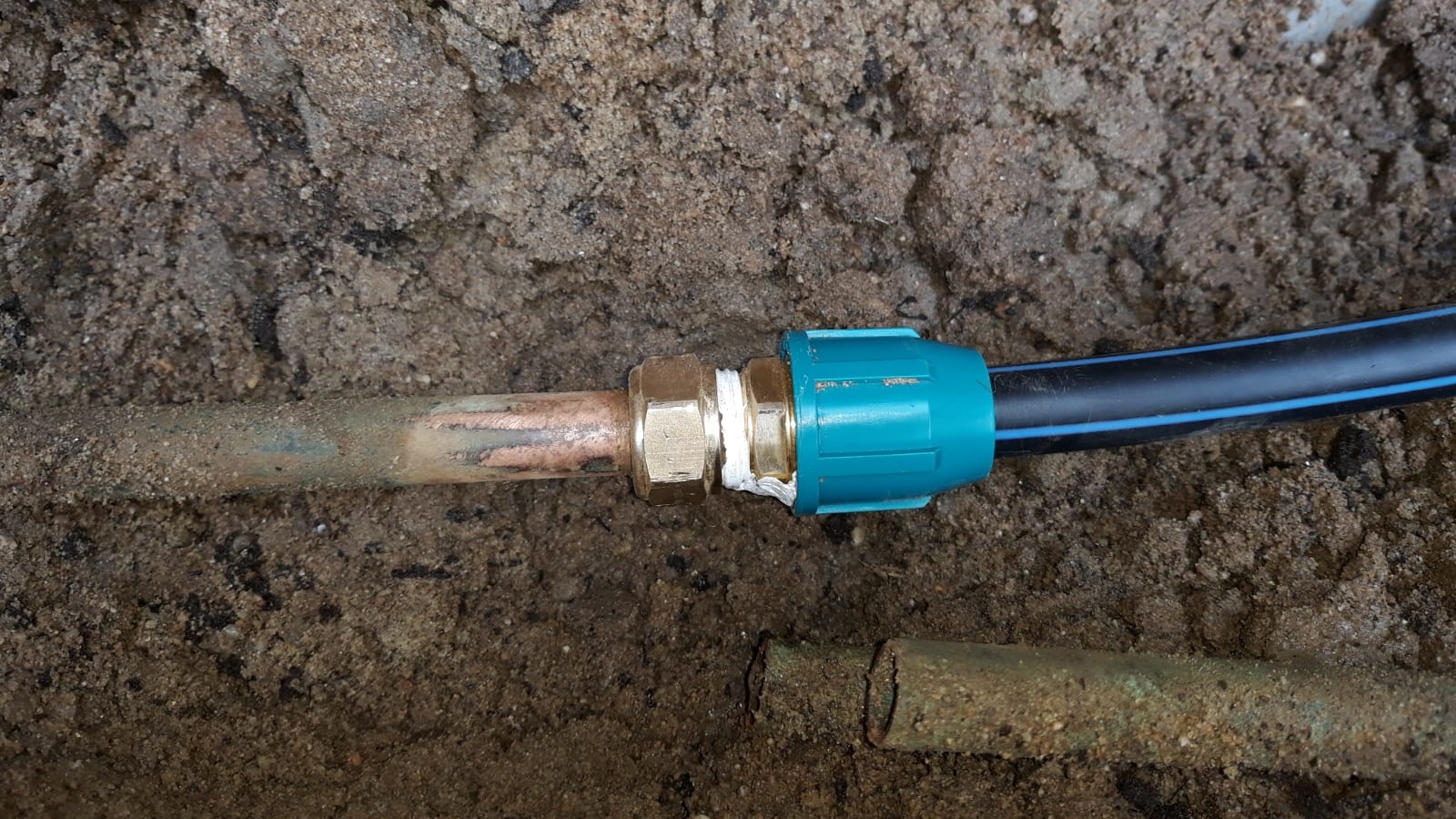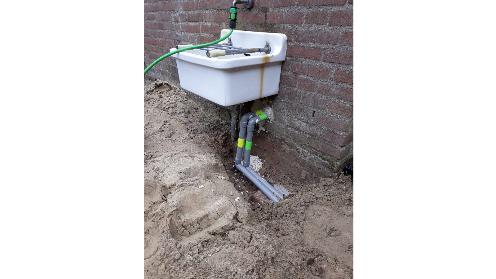 What was not known at first, but quickly discovered by our observant host Gijs, was a leak in the water line to the shed. Like a determined professional, he started digging to find the leak. As expected, he located it quickly. Gijs repaired it himself, disconnecting the old copper pipe and installing a new polyethylene line alongside the other pipes.