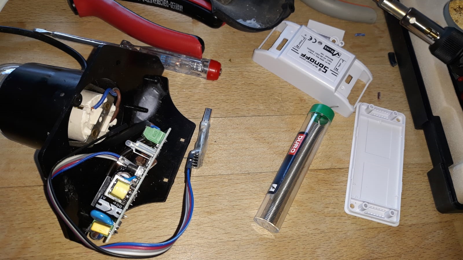 The first smart upgrade is garden lighting. To enjoy the garden in the evening and to find the front door lock in the dark, the garden has outdoor lights. The old setup had one drawback: it could only be switched from inside the house. To control the lights in modern ways, like by voice or phone, it gets a 21st-century upgrade.