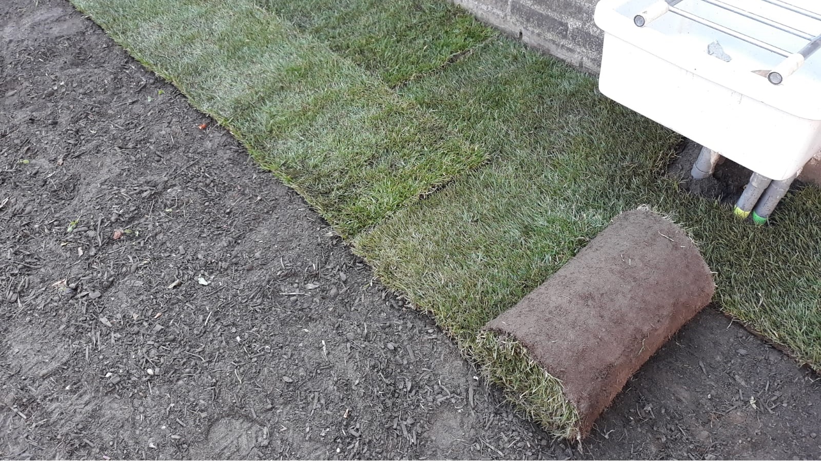 As every decent gardener knows, and Gijs certainly does too, soil needs time to settle. If you lay grass on soil that has not settled enough, uneven spots appear over time. You can speed this up with a compactor or roller, but do not overdo it, roots still need room to grow. In our case, time was not a big issue, so we let the soil settle naturally for a few weeks. After that, only minimal compaction was needed before laying the grass.