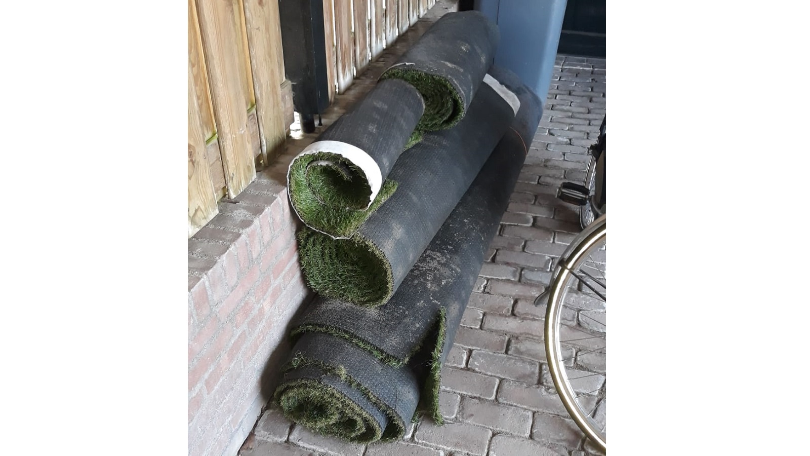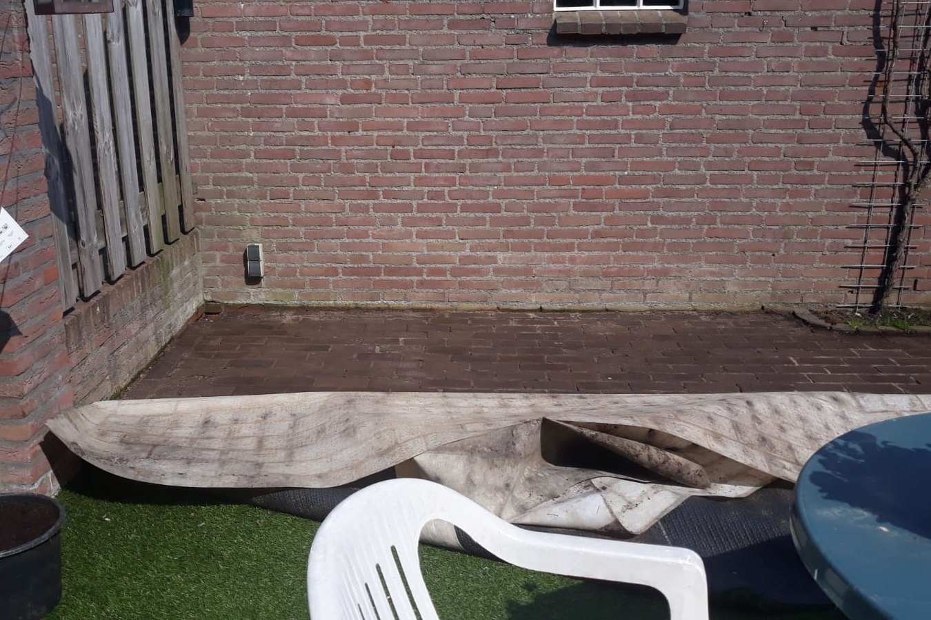 We get to take you through the full makeover of this backyard. Gijs started by removing the practical but hopeless and frankly terrible artificial grass. It was rolled up and sent to the dump, which, as you will probably agree, is exactly where an artificial lawn belongs.