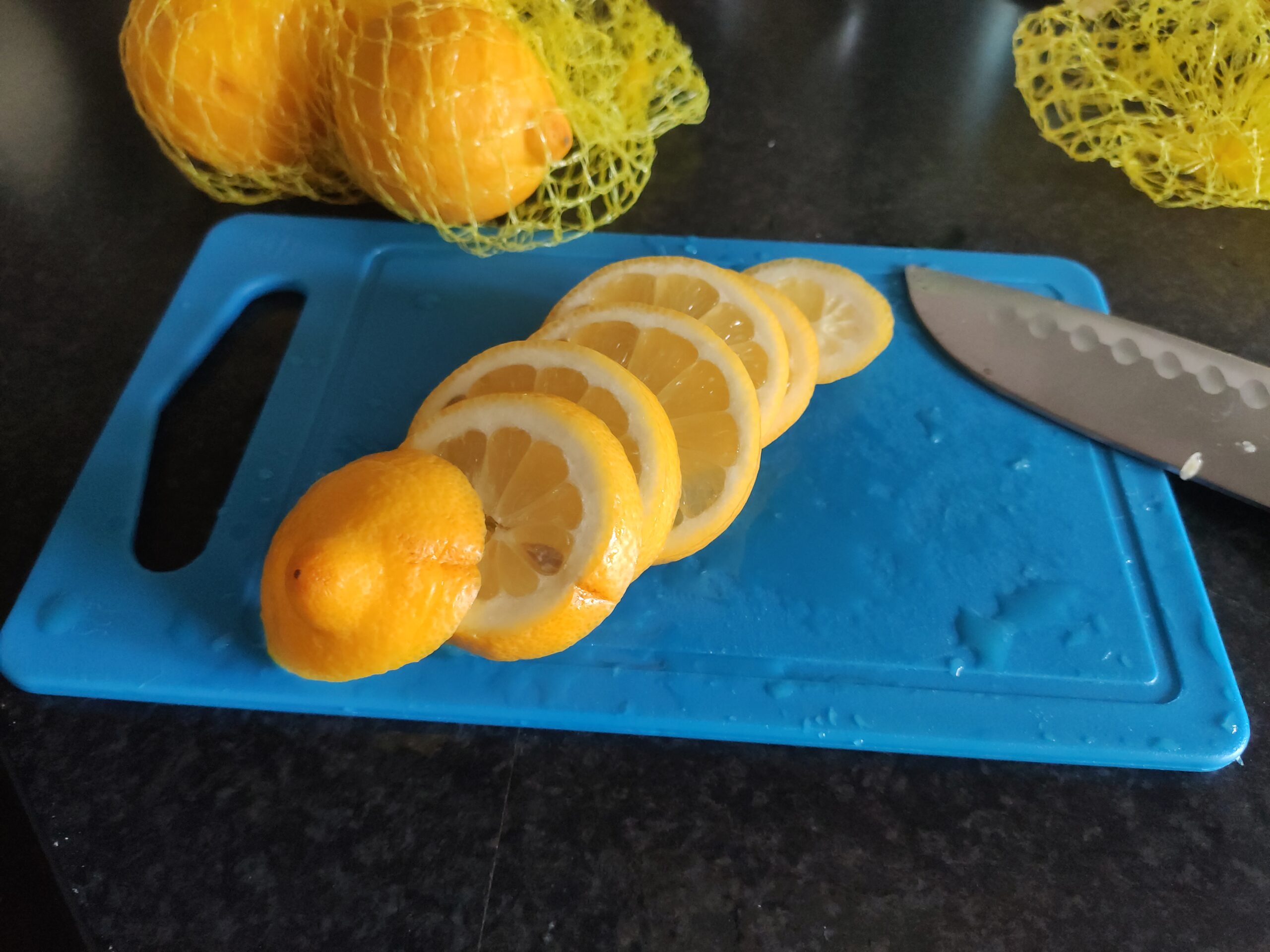 To make the rub, the lemons first need to be smoked and dried. Gijs slices the lemons into thin rounds (about 3 mm) and sprinkles both sides with salt. The salt draws moisture out of the lemons, which helps create nicely dried slices.