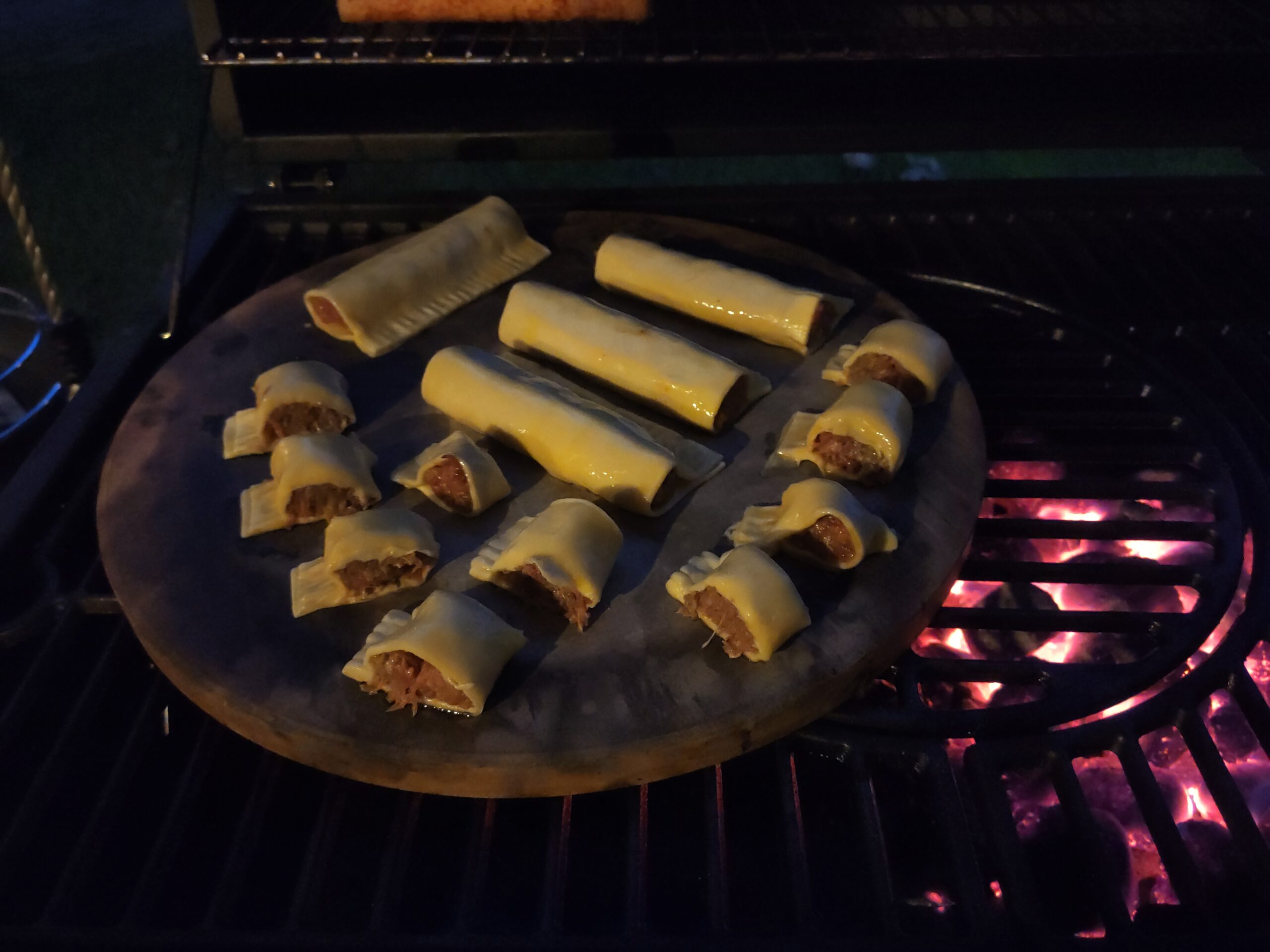 A great variation on MOINK balls is the MOINK sausage roll: a MOINK ball wrapped in puff pastry. During one of his many internet deep dives, Gijs came across this idea, so of course he had to try it. The biggest advantage over regular MOINK balls is that your fingers stay reasonably clean while eating them.
