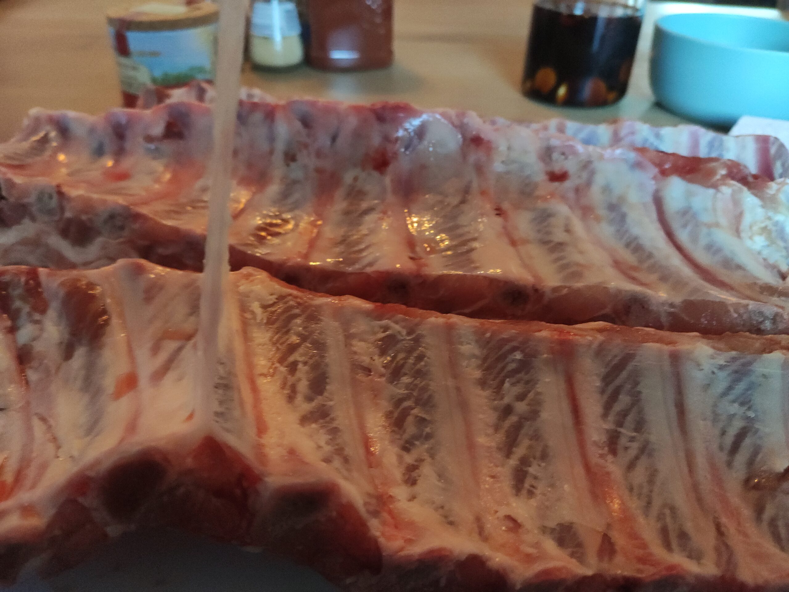 Once the ribs are thawed, the real prep can begin. For maximum flavor, Gijs starts the evening before barbecuing. The ribs need to marinate, and because Gijs does not want to eat at 10 p.m., he lets them sit in marinade overnight.