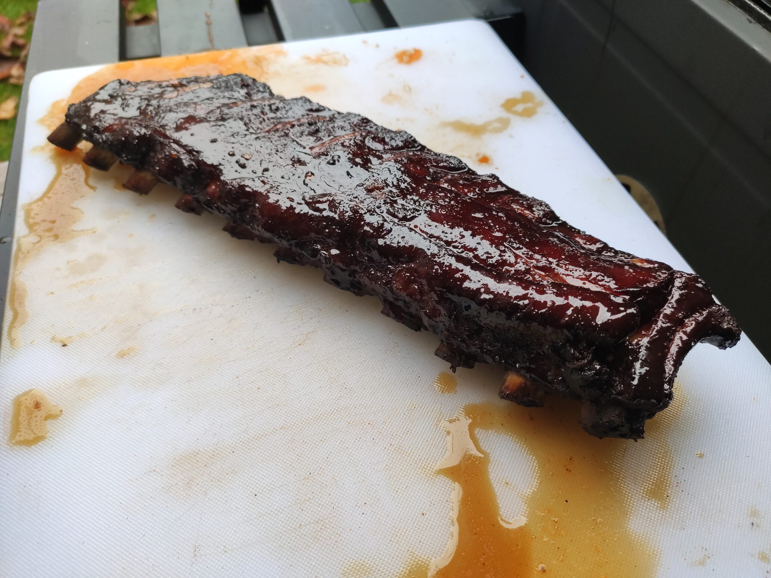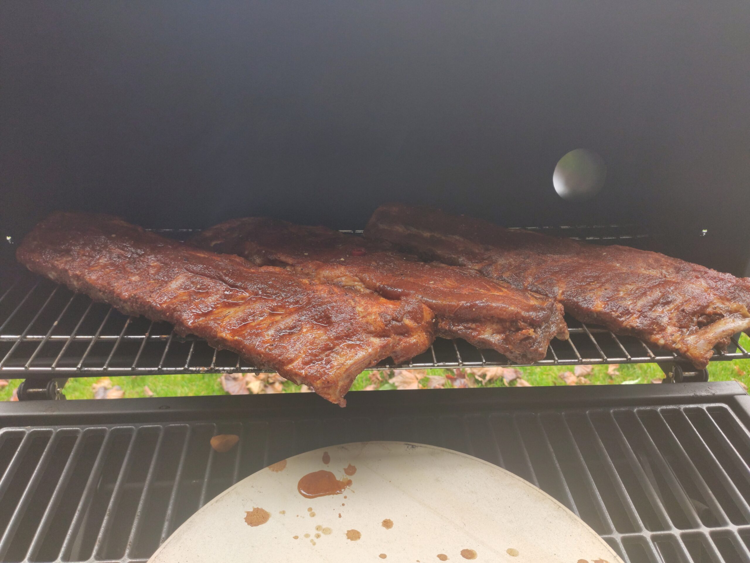 One of the most common ways to cook spareribs is the 3-2-1 method. The idea is that the ribs are cooked in three phases. Many people think 3-2-1 always means 3 hours, 2 hours, 1 hour, but that is not necessarily true. Cooking time depends on the meat itself. For this recipe, Gijs chose meaty ribs, so his cooking time is a little longer. If your ribs are less meaty, it can be smart to shorten the cook slightly.