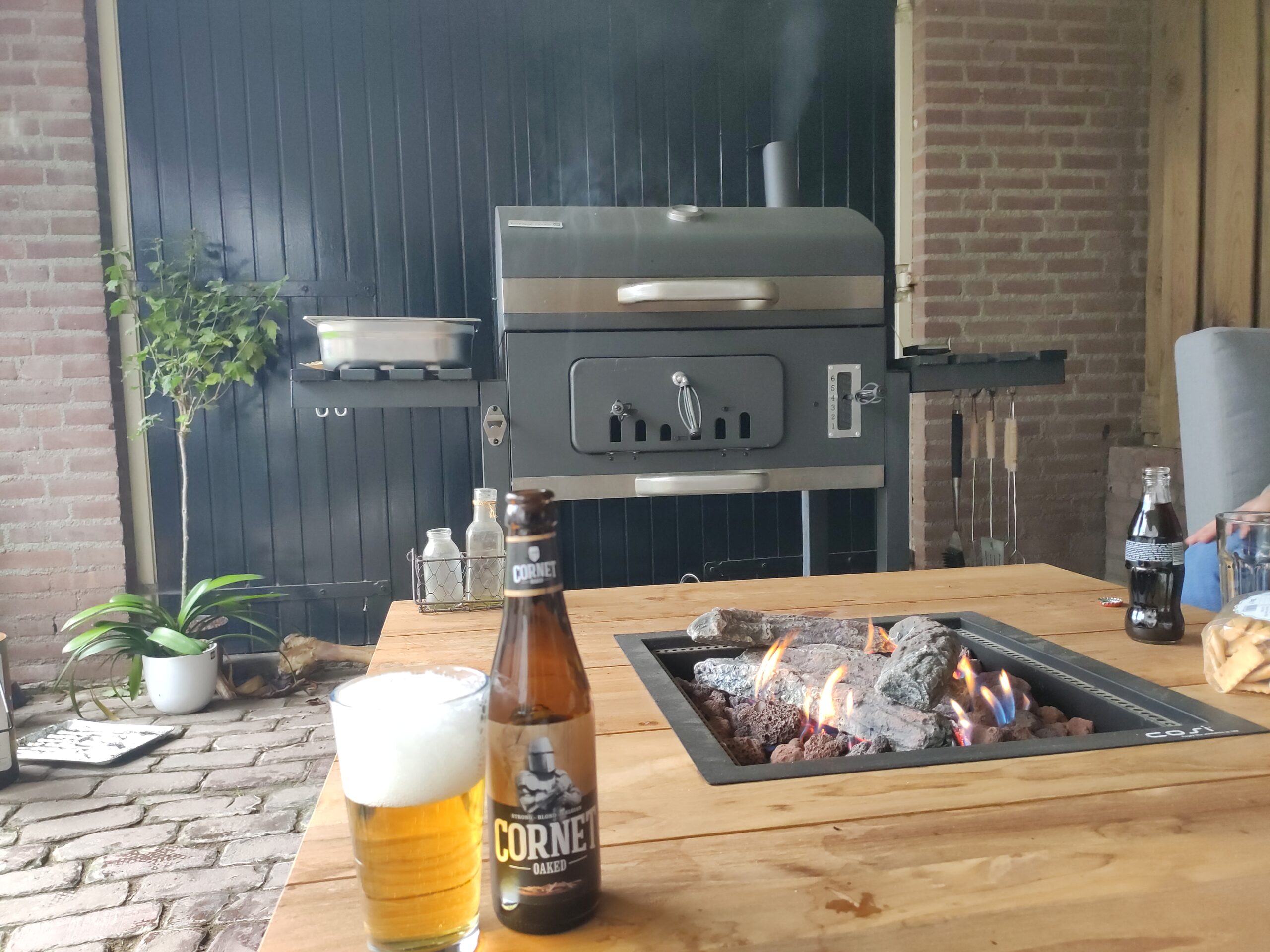 Pulled pork is a dish where the meat needs to stay on the barbecue for quite a few hours (7 to 8). Keeping a stable temperature is important, so with most barbecues it is smart to stay nearby. That is why Gijs invited a few friends over for a relaxed afternoon around the barbecue, with a beer in hand.