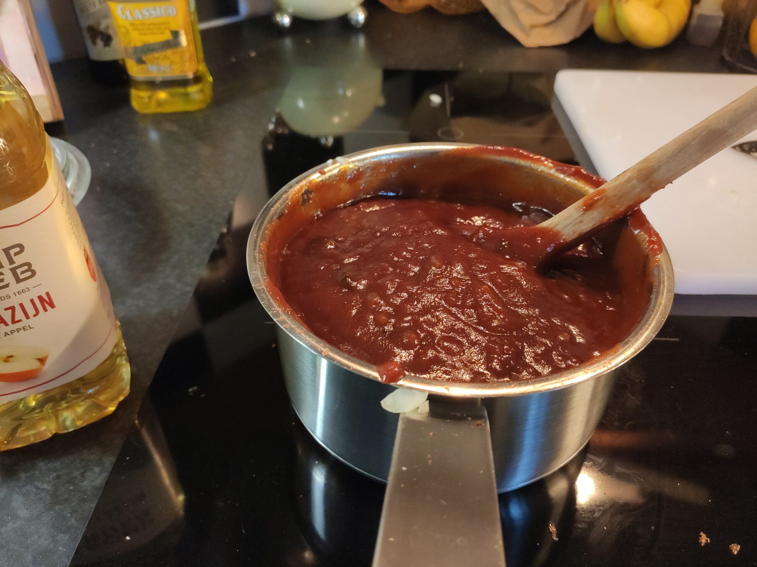 The five-hour wait is also the perfect time to make barbecue sauce. This recipe is based on a blog post from bbq-helden, but Gijs added his own twist.