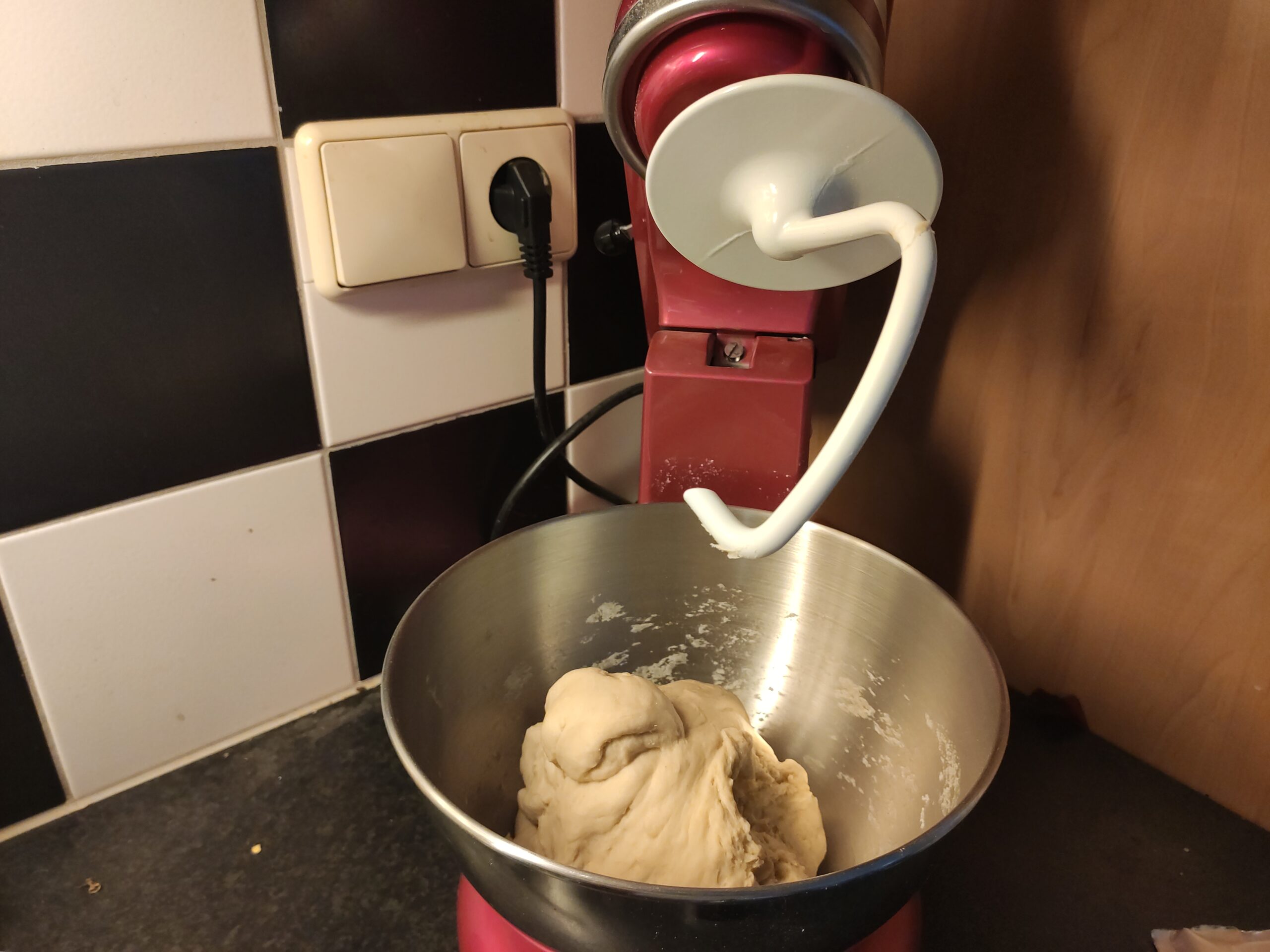 In the meantime, Gijs thought it was a good idea to bake his own buns to serve the pulled pork on. For this, he made a simple bread dough.