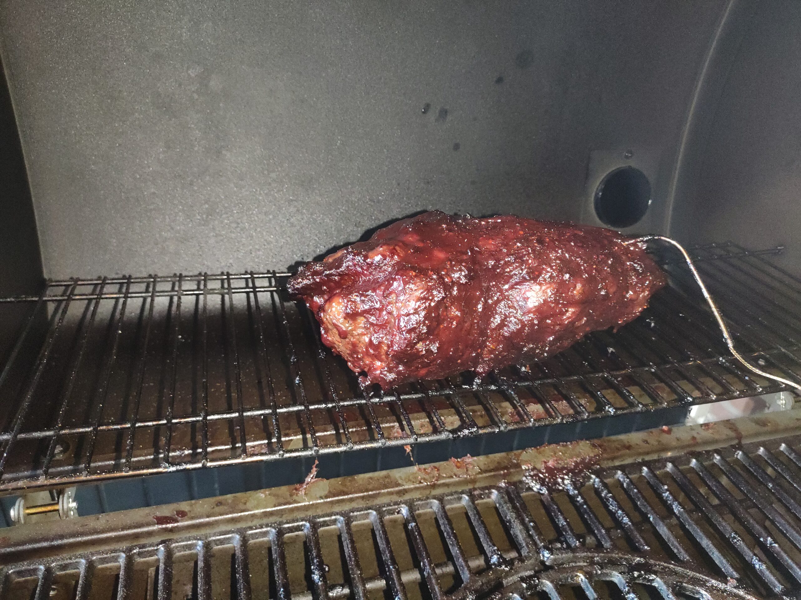 When the meat has been on the barbecue for five hours, it can be brushed with barbecue sauce. Do not be shy and coat the pork neck well; the sauce will form a thick crust and absorb extra smoky flavor.