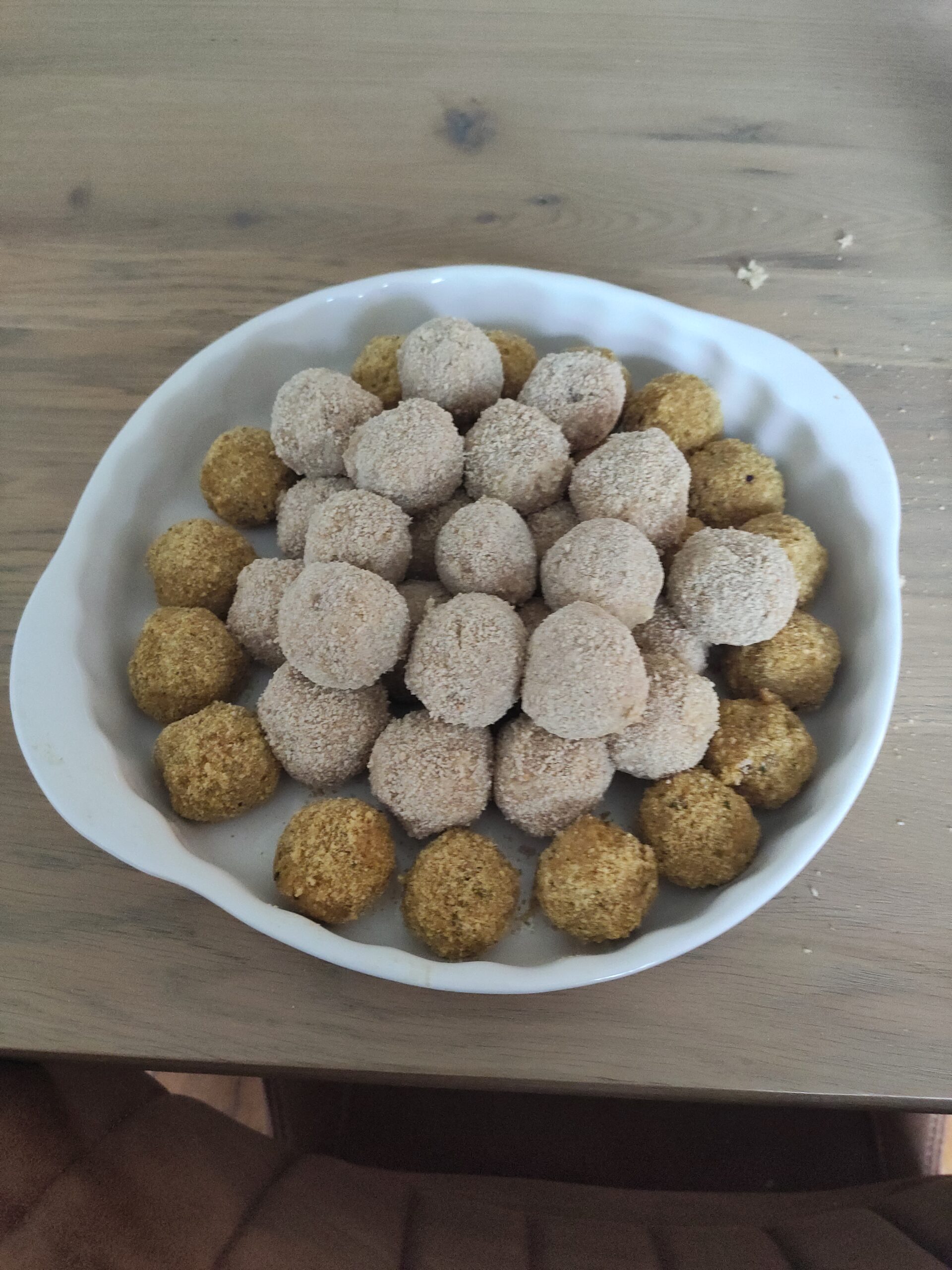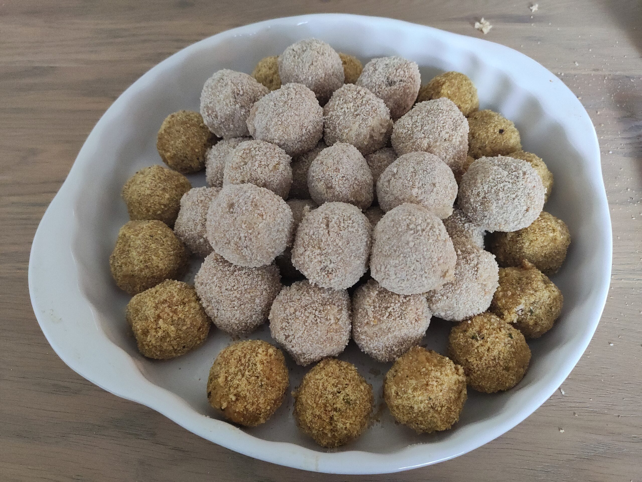 Note: only a very thin layer is needed, otherwise your bitterballen will taste like egg. Finally, he coats each bitterbal in coarse breadcrumbs and places them on a tray. The bitterballen should go back in the freezer for another 2 hours before frying, otherwise the breadcrumbs may come loose in the fryer.