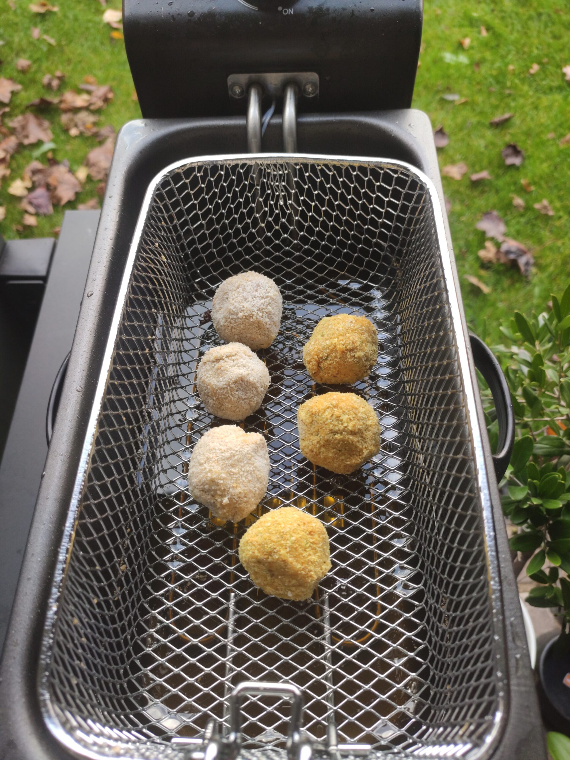 Now that the bitterballen are ready, it is time to fry them. Just like store-bought bitterballen, fry them straight from frozen. After about 4 minutes at 175°C (depending on size), they are ready to eat. These bitterballen will definitely surprise your guests.